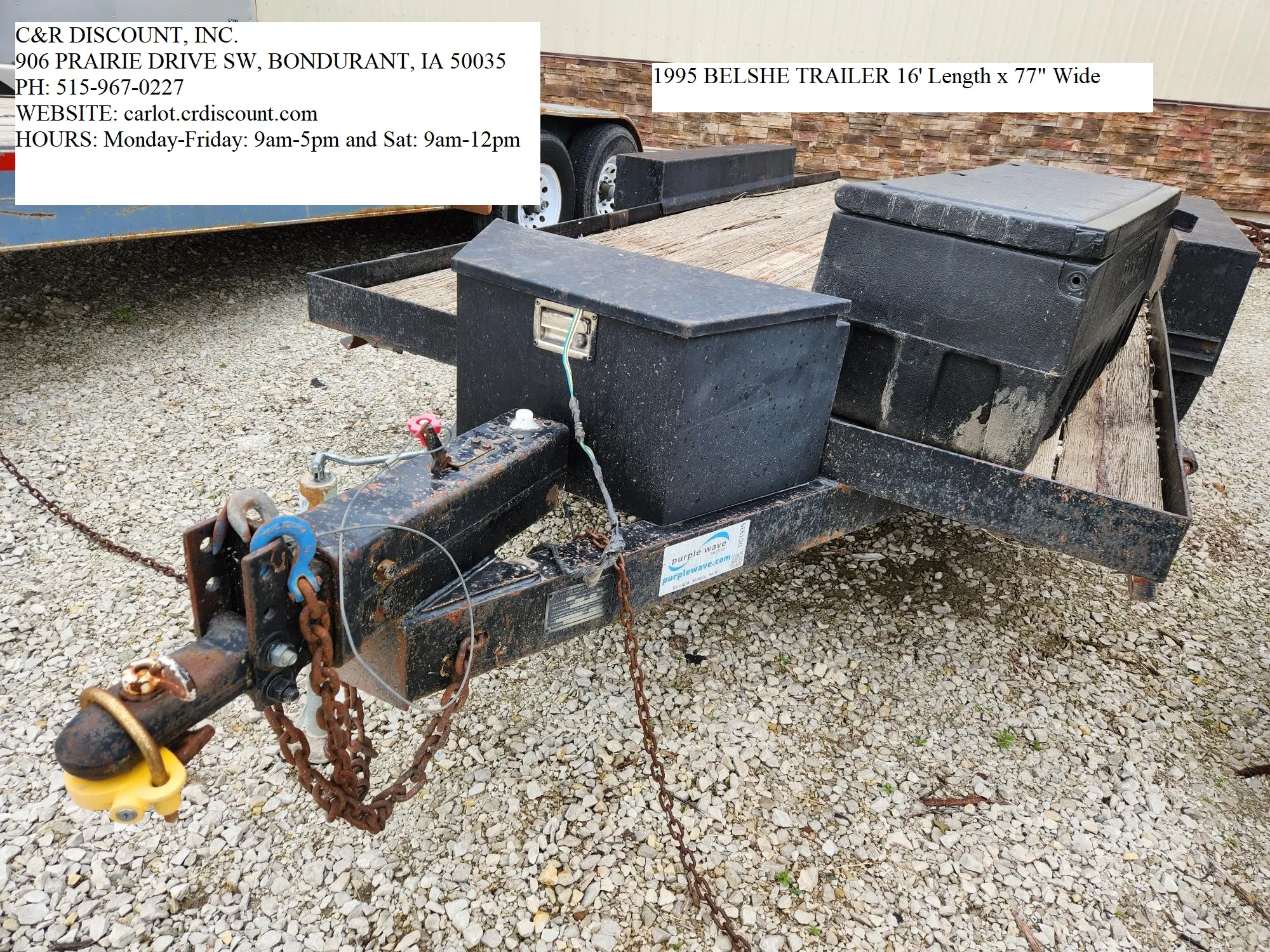 1995 BELSHE Trailer Length: 16' Width: 77" 5000 lb Axle